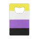 The non-binary flag was created in 2014 by activist Kye Rowan. Each stripe colour represents different types of non-binary identities: Yellow for people who identify outside of the gender binary, white for nonbinary people with multiple genders, purple for those with a mixture of both male and female genders, and black for agender individuals.