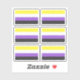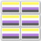 Six Custom-cut vinyl stickers with the non-binary pride flag. A yellow, white, purple, and black flag of the non-binary pride movement