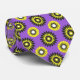 Neck-tie with a seamless modern geometric flower pattern in the colours of the non-binary pride flag; a yellow, white, purple, and black enby pride design on a purple background