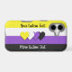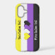 iPhone 17 Case with the non-binary pride flag with little hearts in the center of the design. Black, purple, white, and yellow flag of the enby pride movement; with an editable text field for your name or message