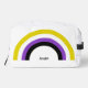 Cool custom non binary toiletry bag with the nonbinary pride flag shaped like a rainbow for a gender fluid friend. Cute non-binary gift.