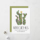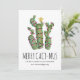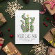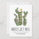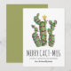 Funny christmas holiday card featuring a cute cactus christmas tree wrapped in string lights, topped with a gold star, the humorous seasons greetings 'MERRY CACT-MUS', your wishes, and family name.