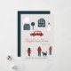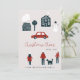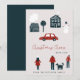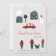 Cute minimalist family no photo seasonal winter holidays card in Scandinavian simple style featuring "Christmas cheer" typography script, hand drawn people, houses and trees, a snowman and a red car. ++++++++++ Easy to personalise with your text and name!
