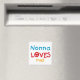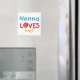 Nonna Loves Me T-shirts, bodysuits, cards, bags, and other gear with a blue, red, and yellow text design.