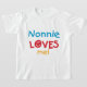 Nonnie Loves Me T-shirts, cards, stickers, bodysuits bags, and more with colourful red, yellow, and blue text and heart design. These Nonnie Loves me apparel and gift items will make nonnie smile!