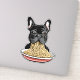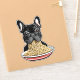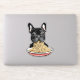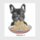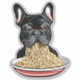 Funny french bulldog eating noodles.