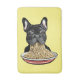 Funny french bulldog eating noodles.