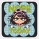 A cartoon girl with an angry expression and clenched fists is illustrated with the words "NOPE, NOT TODAY" on a chequered background. The character wears a headband with a bow and has dark hair flowing back.