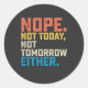 Nope Not Today Not Tomorrow Either Classic Round Sticker