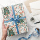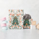 Nordic christmas tree with Scandinavian ornaments and red flowers wrapping paper