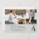 New Home for the Holidays moving announcement card, which you can send as a moving announcement and christmas card combined. The design has doodle sketched Nordic Christmas Trees on the front and the back in a colour palette of mint green grey and gold. The photo template is ready for you to add 2 of your favourite pictures, displayed as 1x horizontal landscape and 1x vertical portrait. All of the wording is editable, so it can be worded from a single person, couple or family.