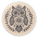 This elegant ceramic knob features an illustration of a horned owl rendered in Nordic folk art style in black on a beige background.
