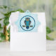A cute owl in brown and blue, done in Nordic folk art style, superimposed on a snowy background image. You may remove border ring. Customise by adding your own text on the reverse side.