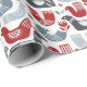 Nordic Folk Art Red Blue Birds And Flowers Wrapping Paper