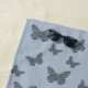 The wings and body of a monarch butterfly are decorated with designs inspired by patterns on sweaters found in the Nordic countries of Norway, Sweden, and Finland, with motifs like snowflakes, mountains, and evergreen trees in white, blue, green, and grey with bright red accents.