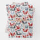 Nordic Red and Blue Winter Pattern Wrapping Paper Sheet