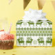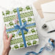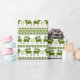 Festive gift wrap design for the Holidays features Nordic / Scandinavian reindeer & snowflakes pattern in green and white