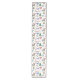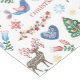 This pretty Christmas table runner is covered with scandinavian style images, including a reindeer, pattern hearts, a bird, a Holiday tree, flowers, snowflakes, and more. Colours include red, green, gold, blue and brown. Everything is placed on a white background. Unique and festive for any Holiday table.