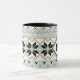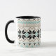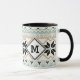 This intricate Nordic snowflake design using blue, grey-brown, and black cross-stitching on a white background is a treat if you love Scandinavian winter sweater patterns. Personalise with a monogram initial to make it your own.