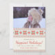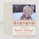 Spread some holiday cheer with this festive card featuring a nordic-inspired rustic snowflake design in muted reds, blues and browns. Customise by adding your photo, custom greeting, name and year. The backside features a printed wintery white embossed snowflake design. Whether you're sending Christmas holiday or New Year's wishes, you're sure to receive many compliments on your card.