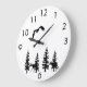 Pine trees and two moose in black. With an eagle flying above the forest. The black silhouettes are inspired by the nordic and Scandinavian woods. White background, transparent background so you may add a colour to match your home interior. Black clock numbers