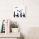 Pine trees and two moose in black. With an eagle flying above the forest. The black silhouettes are inspired by the nordic and Scandinavian woods. White background, transparent background so you may add a colour to match your home interior. Without clock numbers