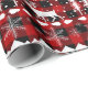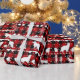 An elegant neutral holiday wrapping paper featuring a Nordic sweater winter animal pattern in holiday red, buffalo plaid, white and black.