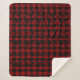 A red and black sherpa fleece blanket featuring a red and black buffalo plaid background with a Nordic sweater pattern of winter animals printed over top of the plaid creating a textured animal themed Buffalo plaid. Makes a perfect holiday pet gift for your furry kids and friends.