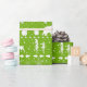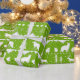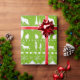 A bright tropical coloured lime green and white holiday wrapping paper featuring a Nordic sweater pattern of winter animals like the arctic fox, the stag reindeer and a polar bear family with snowflakes, pine cones, woodlands and stars.
