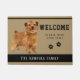 Cute doormat featuring an illustration of a Norfolk Terrier. Customisable background colour and texts. Perfect gift for the dog lover or Norfolk Terrier owner.