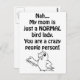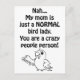 Funny bird quote saying: "Nah... My mum is a normal bird lady, you are a crazy people person!" with a lovebird cute cartoon drawing on the bottom. Perfect gift for crazy bird ladies, bird moms, bird mommies and bird lovers.