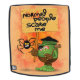 Funny Frankenstein Monster Cartoon Character holding a wooden panel Comic with the text / Comic "Normal People Scare Me", and with Spider pet hanging on the Panel. Original Vector Graphic Art Copyright BluedarkArt.