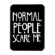 This popular design features a unique layout and a custom font with text that reads: "Normal People Scare Me". This humourous design makes a great gift for that horror story fan in your life. We also have this graphic available on other products, both light and dark fonts.