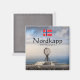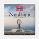 Travel photo of the North Cape (Nordkapp) with coordinates and the norwegian flag. Northern Norway, Scandinavia.