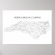 State of North Carolina map with county names and outlines in black and white. This county map poster is helpful for school, business, reference or information tracking.
