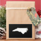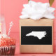 The shape of the state of North Carolina in black and white. You can change the background colour or add a custom souvenir text message.