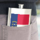 The product is a good size and came exactly as it was pictured.  The lid is not attached to the flask, which could be dangerous on drunken nights... The print came out surprisingly well and looks very sharp.  Would definitely recommend.