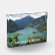 Acrylic photo block for display that features a photo image of emerald green Diablo Lake, North Cascades National Park, located in Washington State. Makes a great, travel souvenir and gift!