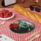 These plates are made with sturdy material and wax-like coating so they work for all kinds of food! Size is great and suffice is smooth! Also packaged well for delivery!! Exceptional artistry! I used these for Christmas cookie gifts and the plates got more attention then the cookies! The moose has a warm happy holiday look and the art is so detailed I am going to buy more products with this art! Love it!!