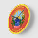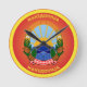 The clock did not take as long to arrive as I thought it might and was extremely well packaged. I didn't do the measurements so I didn't realize it is a little smaller than the average clock but that does not matter (just make sure you check if that's important to you).It is really nifty! It seems very solid and well made not flimsy at all. It has been going well and has kept good time in its few weeks on my wall. Nice product. Gets noticed too! Nicer in real life than the picture but true to the picture