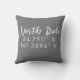 Seasonal throw pillow with North Pole longitude and latitude coordinates. White font on grey background
