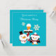 This cute kid's holiday party invitation from Mr. Penguin and Mr. Snowman comes straight from the North Pole! Each are dressed in winter clothing, and a few white snowflakes drift down around them. The images are placed on a bright sky blue background. The front has two custom text fields, with plenty of room on the back for all your information. The cartoon image of the penguin is repeated on the back. Fun for all ages! *Clip art used in this design is copyrighted by Encore Software, Inc., which permits use to its licensors. All rights reserved.
