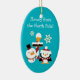 Straight from the North Pole, a cartoon snowman and penguin bring holiday greetings to your child! They stand in front of a red and white striped pole with a sign that says North Pole. The images are placed on a bright sky blue background. Bright and colorful! The text on each side of the ornament can be easily customized by you. Cute! *Clip art used in this design is copyrighted by Encore Software, Inc., which permits use to its licensors. All rights reserved.