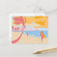 Custom Post card with a 2D illustration of surfers on the world famous beach of North Shore, O'ahu in Hawai'i.