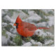 Northern Cardinal in Balsam fir tree in winter Cutting Board