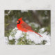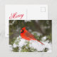 Northern Cardinal in Juniper Tree at Wintertime Holiday Postcard
