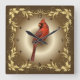 Northern Cardinal Male ~ Red With Pointed Crest ~ Square Wall Clock
