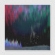 Modern landscape with bright colours showing forest scene with nothern lights or aurora borealis and starry sky.