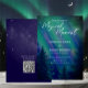 Northern Lights Forrest Magical Moment QR Code Wedding. Invite guests to a celebration shrouded in romance and enchantment with this elegant, deep-toned Northern Lights celestial inspired watercolor wedding invitation. This design features a striking watercolor wash of midnight blues and deep forest greens, creating an atmosphere of twilight magic. Add all your details and add your URL to the QR Code on the back for guests to access your wedding website and details.