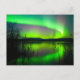 Intense northern lights (Aurora borealis) over Lake Laberge, Yukon Territory, Canada, with silhouettes of willows on lake shore.